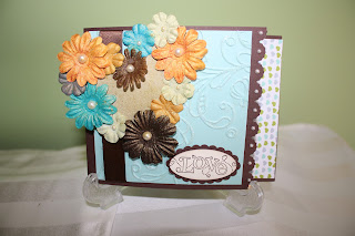 Here is a closer shot of the Shimmer and cool embossed hearts. I used the ruffled ribbon in Pool Party and popped up some of the hearts and the large heart with Dimensionals